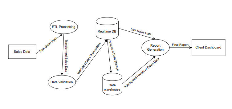 Sample Data Flow Diagram Showing How Data Moves From File Upload to Transformation, Storage, and Reporting, With Accompanying Metrics
